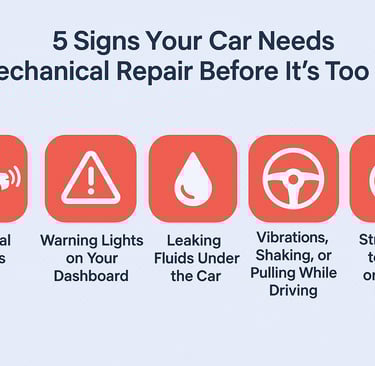 Noticing strange car noises, dashboard warnings, or power issues? These early signs can point to serious mechanical problems. In this article, we break down the top 5 red flags every Ontario driver should watch for and explain how early repairs can save you from breakdowns, safety risks, and high costs. Ideal for Brampton drivers and anyone navigating Ontario roads. description.